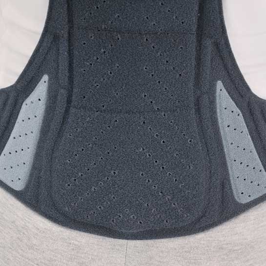 • il tirante ascellare è dotato di morbida imbottitura e stecca-guida per facillitare l’indosso e della spinta posteriore regolabile anti-assuefazione
